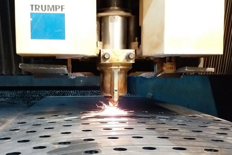 Corte laser com capacidade de corte 6.000mm X 2.500mm até 38 mm de espessura, aceita cortar chapas de aço carbono, galvanizadas, inox e alumínio.