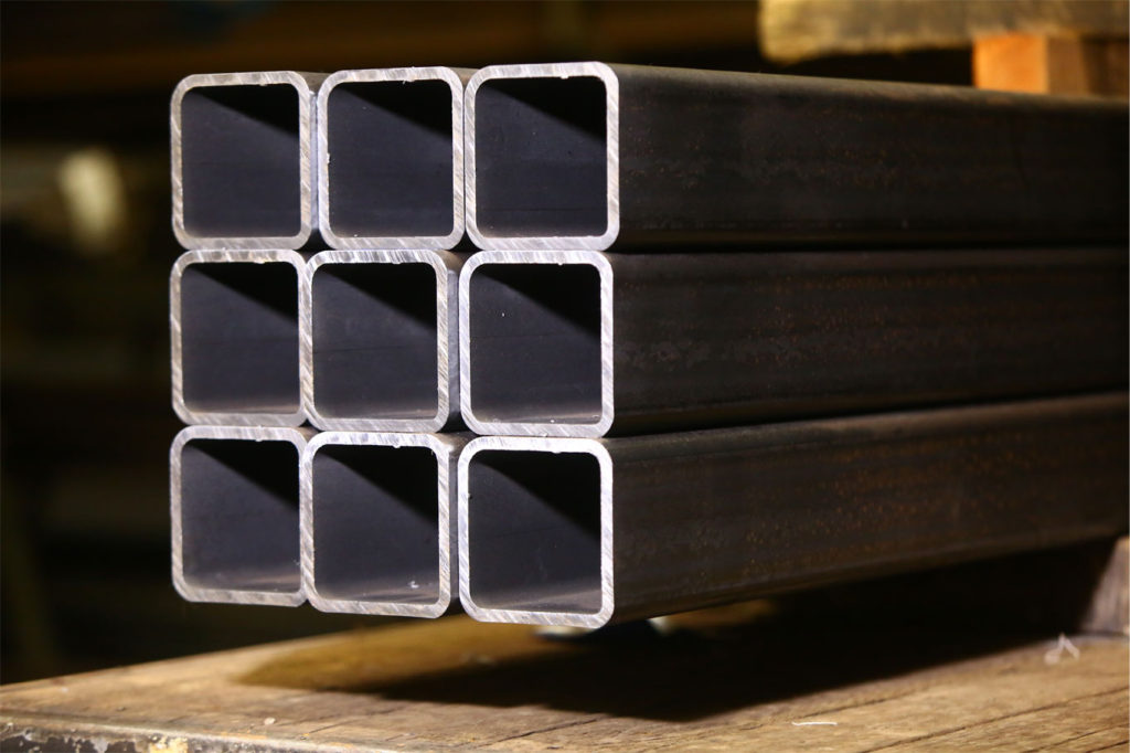 Tubo quadrado com costura, medidas externas, produzido em aço carbono SAE 1006 a 1012 na chapa fina frio e fina quante, tendo opção com a costura interna removida.